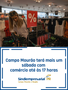 O comércio lojista de Campo Mourão funcionará em horário especial neste sábado (dia 14), com atendimento ao público até