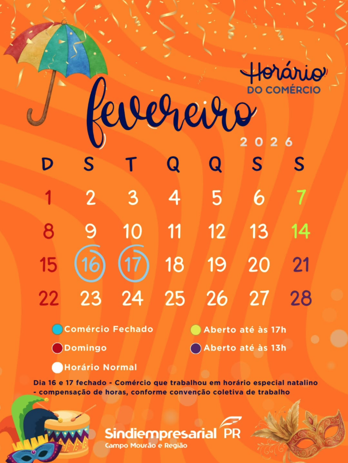 O calendário de fevereiro de 2026 reafirma a importância do planejamento no comércio de Campo Mourão e região. Com regras claras, baseadas na Convenção Coletiva de Trabalho, o setor segue organizado, equilibrando atendimento ao consumidor, valorização dos trabalhadores e segurança jurídica para os empresários.