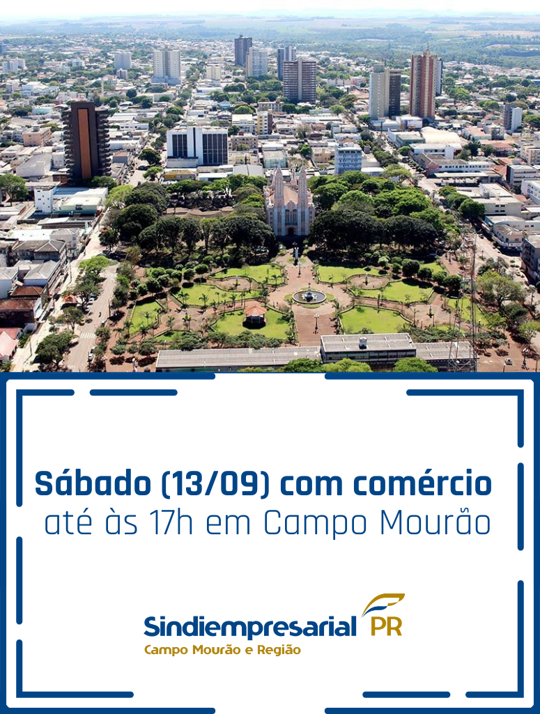 Sábado (13/09) com comércio até às 17h em Campo Mourão
