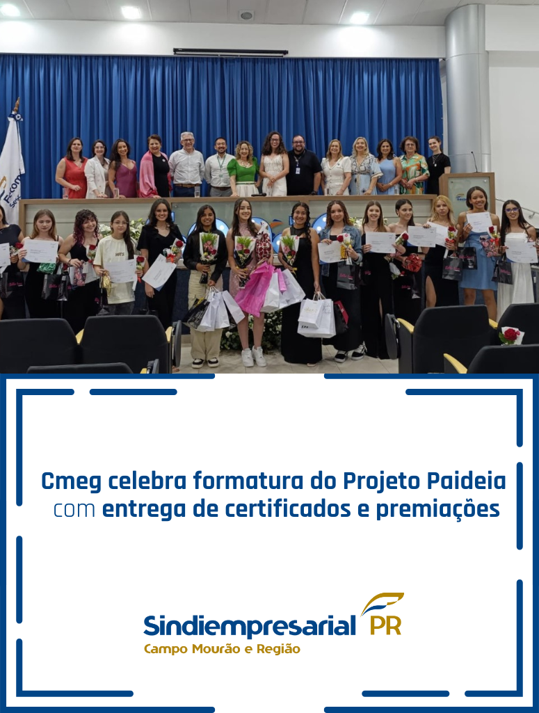 Na noite de segunda-feira (10), a Câmara da Mulher Empreendedora e Gestora de Negócios de Campo Mourão (Cmeg), em parceria com o Senac, Sebrae, Sistema Fecomércio e o Sindiempresarial, realizou a cerimônia de formatura do Projeto Paideia/2025, no auditório do Senac. A iniciativa tem como objetivo fomentar o protagonismo jovem, promovendo o desenvolvimento pessoal, social […]